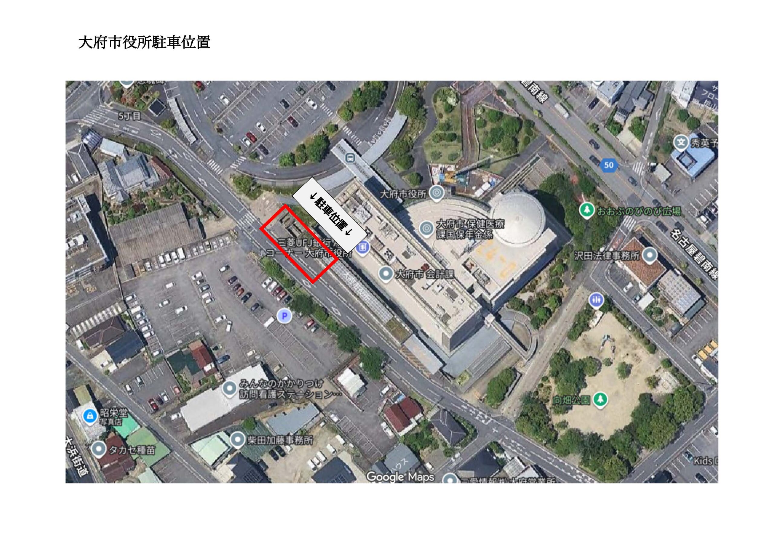 お車でお越しの方は、市役所の駐車場をご利用ください。